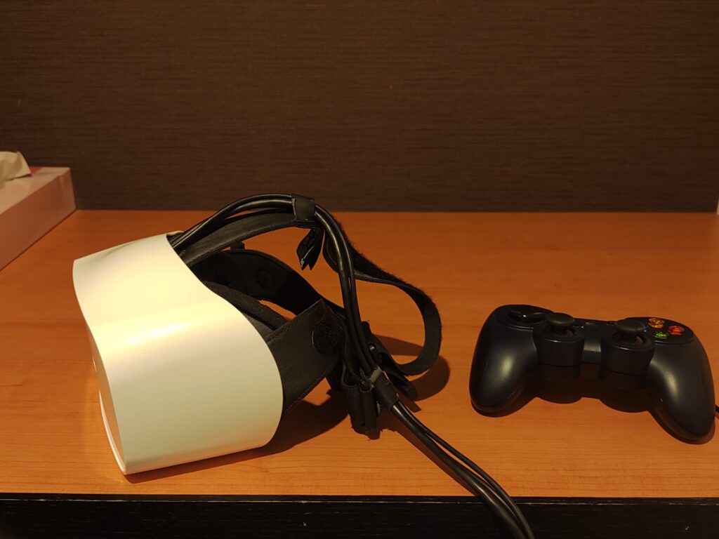 VRなので当然ですが、画像左のゴーグルを装備して上下左右後等に頭を動かすと、それに合わせて映像作品の景色も変わりました。